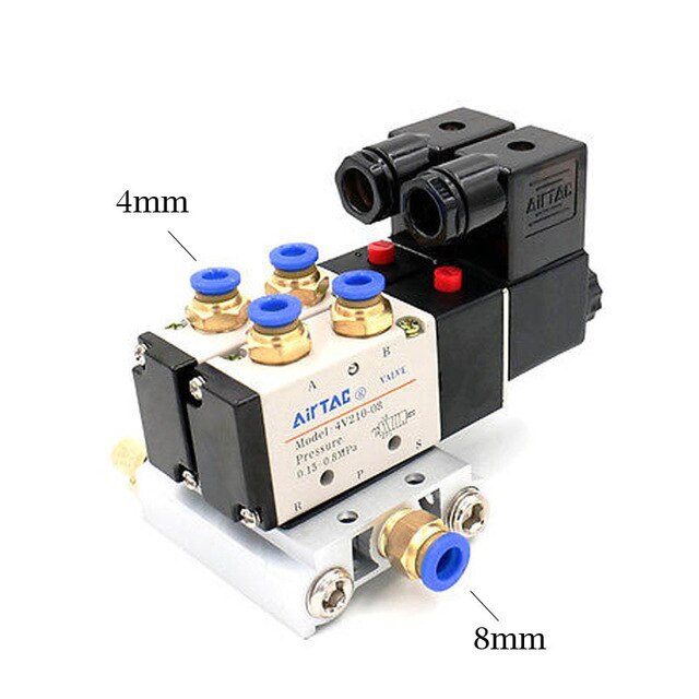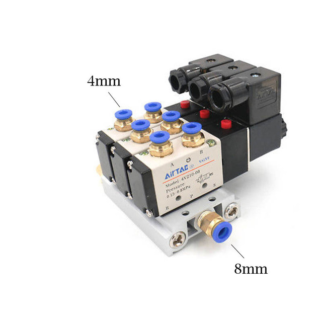 12/24 V DC 110/220 V AC Multi Option 4V210-08 Pneumatischer Magnetventilblock mit Schalldämpfer-Fitting-Basisverteiler 2/3/4/6 Wege